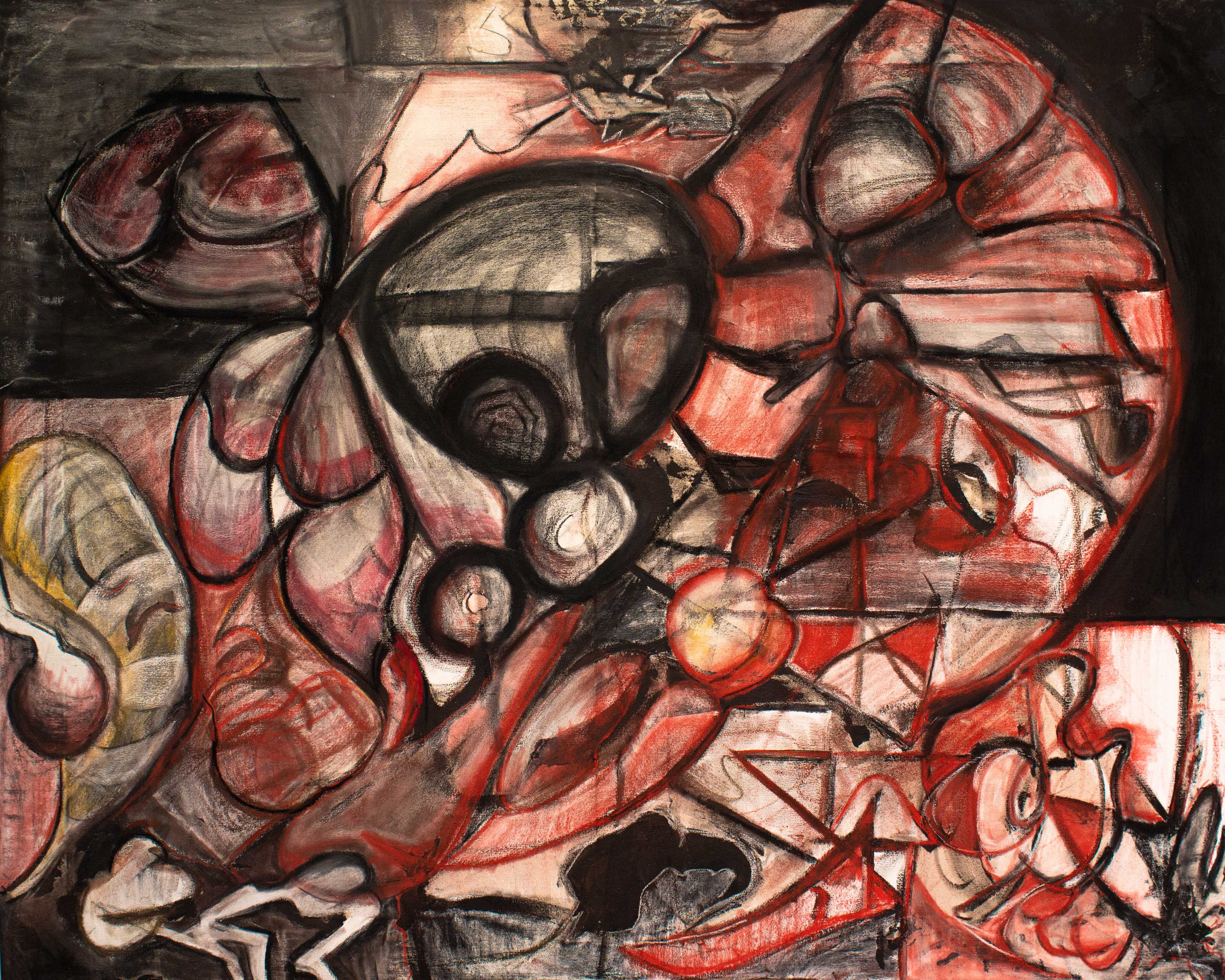 acrylic, oil pastel, chalk pastel, charcoal on canvas